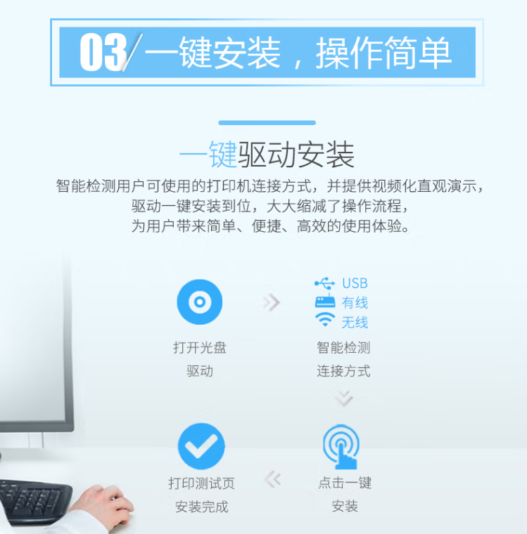 包装清单  :   主机 x1 硒鼓 x1 USB连接线 x1 电源线 x1 随机光盘 x1 快速安装指南 x1 三包凭证 x1