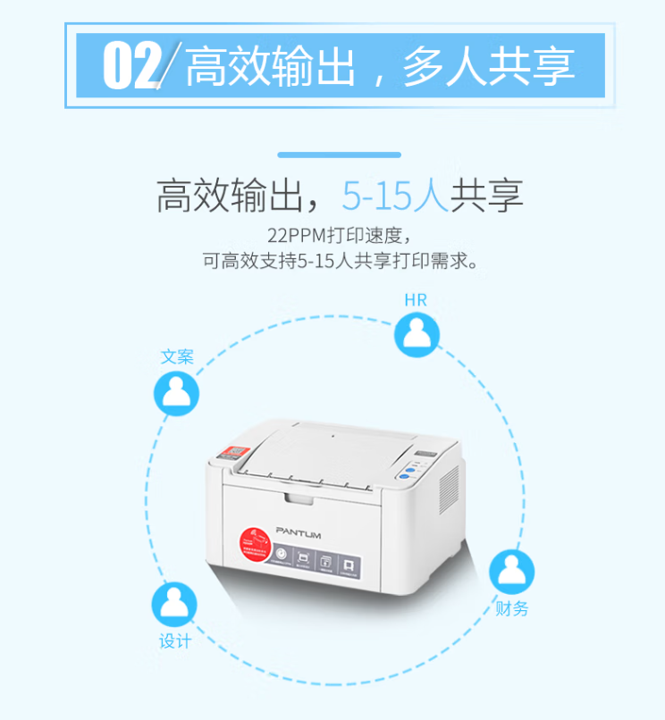 黑白打印速度(页/分钟 ppm)  :   22