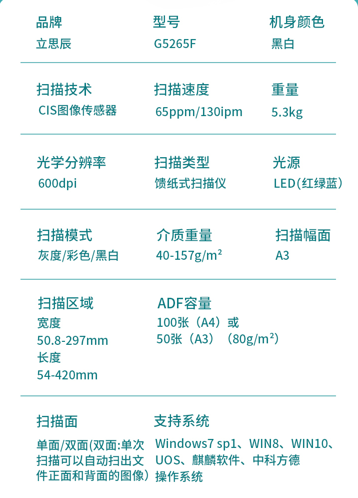 ADF彩色双面扫描速度(A4,200dpi)  :   无