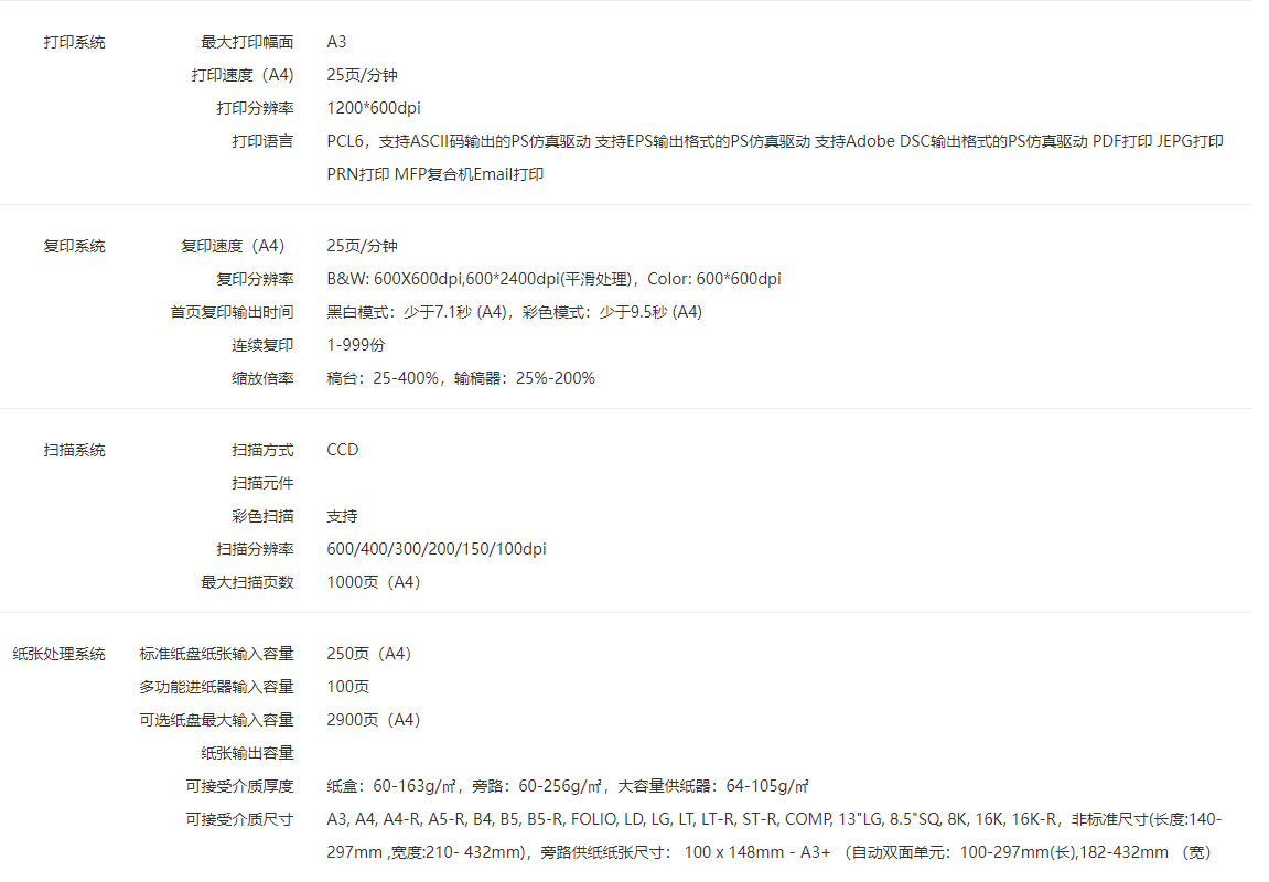 黑白打印速度(页/分钟 ppm)  :   无